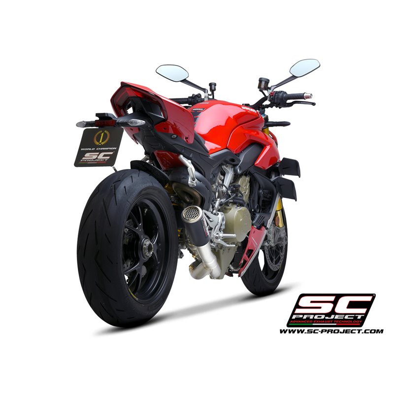 This Exhaust CR-T M2 Carbon in the color Carbon from SC-Project is a top quality product, perfectly fitting on the Ducati Streetfighter V4 2021-2022.