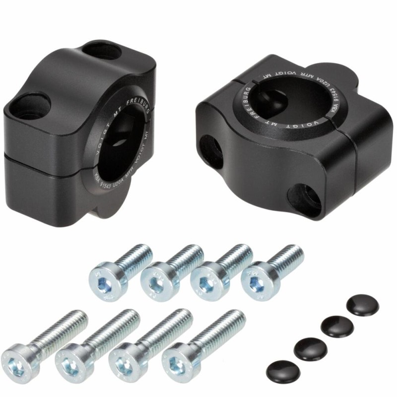 These handlebar risers from Voigt MT are made of the best quality materials. First, the product is CNC milled, then it is blasted with glass and then anodized.