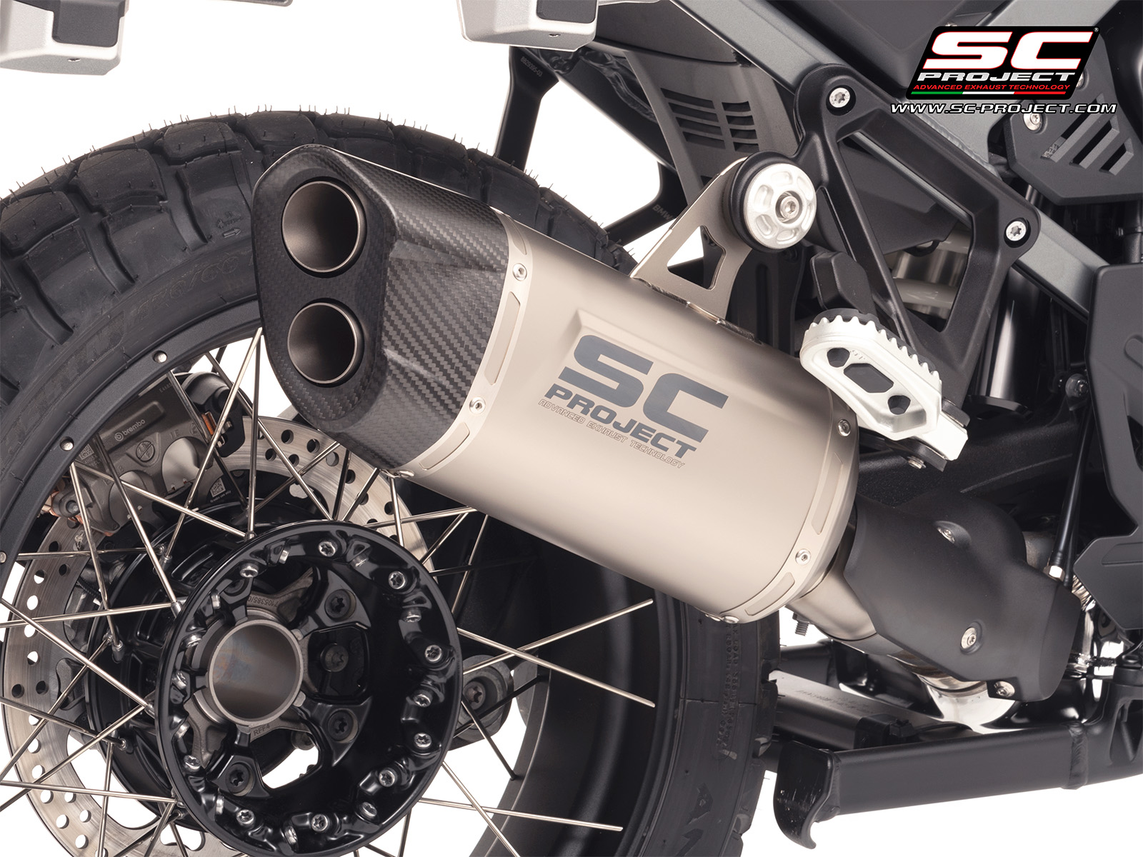 Deze Uitlaat Adventure-R Titanium in de kleur Zilver van SC-Project is een topkwaliteit product, perfect passend op de BMW R1300GS Adventure (Koffer compatibel) 2025.