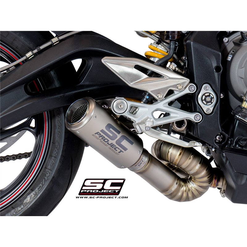 Deze Uitlaat CR-T Titanium in de kleur Zilver van SC-Project is een topkwaliteit product, perfect passend op de Triumph 765 Street Triple (+S/R/RS) 2017-2019.